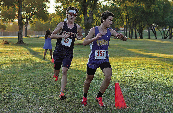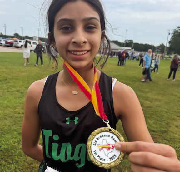 Jillian Rodriguez holds up her gold medal following her 13:22 finish at the Ram Run on Saturday morning. Photo Courtesy of Tioga ISDAubrey Chaparral Kaden Plaugher passes Zayden Dierkes from Frisco High School at the Fossil Ridge Run of the Panther. Plaugher finished sixth in the boys 5K run. Travis Walton / Contributing PhotographerGarrison Black shows off his silver medal after finishing the 5K race at the Ram Run in 17:10. Photo Courtesy of Tioga ISD