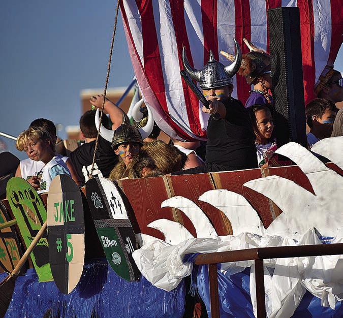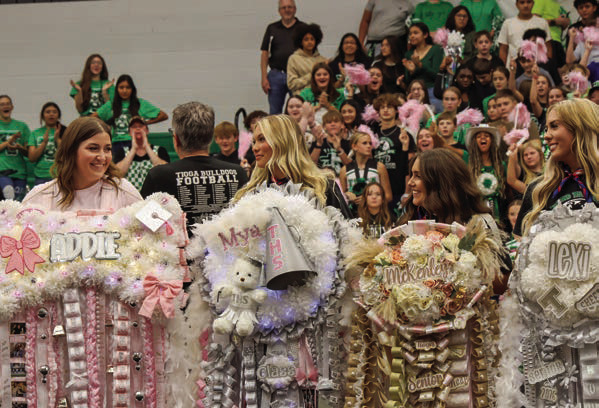 Tioga High School Principal Keith Kirkland gets the crowd fired up during the homecoming pep rally in the high school gym. Martin Edwards/The Post-SignalA group of young Bulldogs sail down the street in their Viking-themed float during the homecoming parade on Sept. 25. Lynn Fisher/ Contributing PhotographerAddie Isbell, left, Mya Alexander, McKenley Clay and Lexi Boyd show off their mums during Tioga’s Homecoming pep rally. Martin Edwards/ The Post Signal