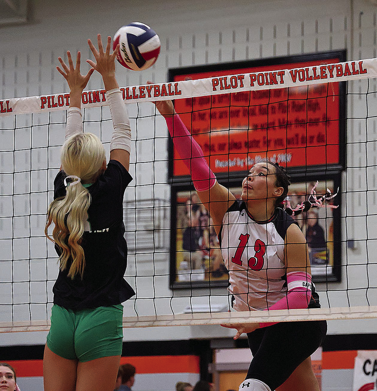 “We’ve been like gunning for this one for a couple games now, and they earned it,” said Pilot Point head volleyball coach Jessica Ledbetter. “This just helps solidify that we are a good team, and that we’re a team that can rival other teams in the district. This was just what we needed going into the second half of district.”