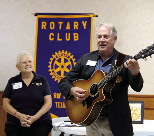 Jon Bullock, who became district governor on July 1, started his portion of the meeting with a song about Rotary.