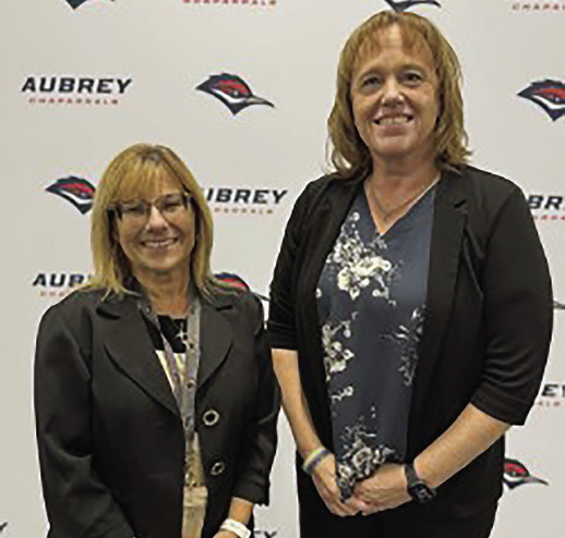 West Elementary School’s new Assistant Principal Brandee Gallagher smiles next to Aubrey ISD Superintendent Dr. Shannon Saylor at the Nov. 19 school board meeting. Eva Coleman/Aubrey ISD