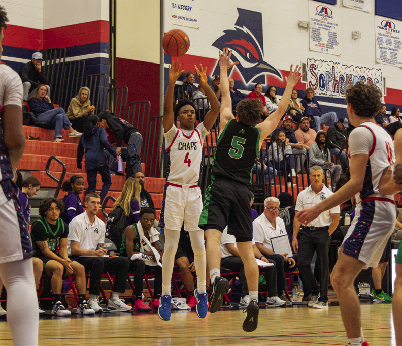 Aubrey Chaparral Desmond King shoots over the outstretched arms of an Azle defender.