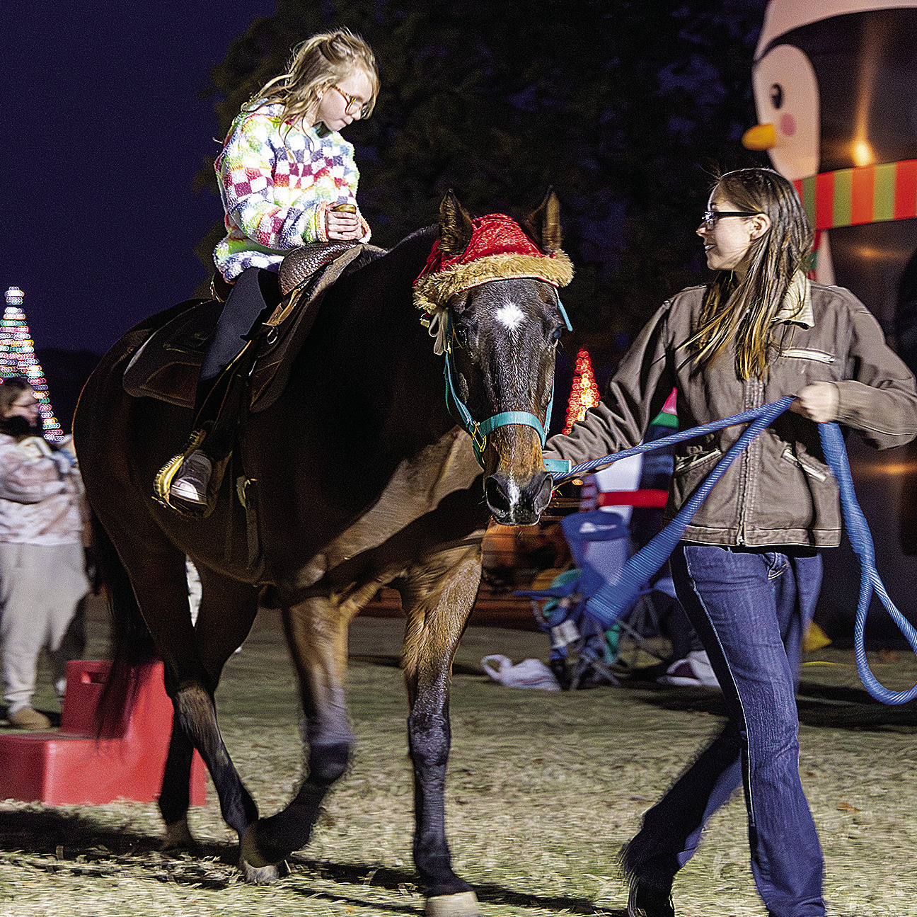 Sarah Klatt of Hopper Ranch leads a rider around the Woodlands Park in Krugerville on Dec. 5. Martin Edwards/The Post-Signal