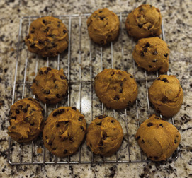 7. Scoop them onto a pan and put them into the oven at 375 degrees for 11 minutes.