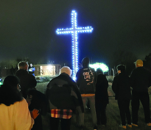 Pastor Jason Sidler speaks at the first annual Lighting of the Cross at Calvary Baptist Memorial Park on Dec. 3.