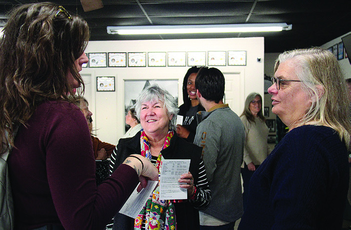 Leigh Ann Weaver with Texas New Mexico Power, left, chats with Bonnie Ambrose and Cindy Kennedy at the Coffee Brews and Business News. Starbright, Pilot Point Community Arts and the Martin General Store co-hosted the event.