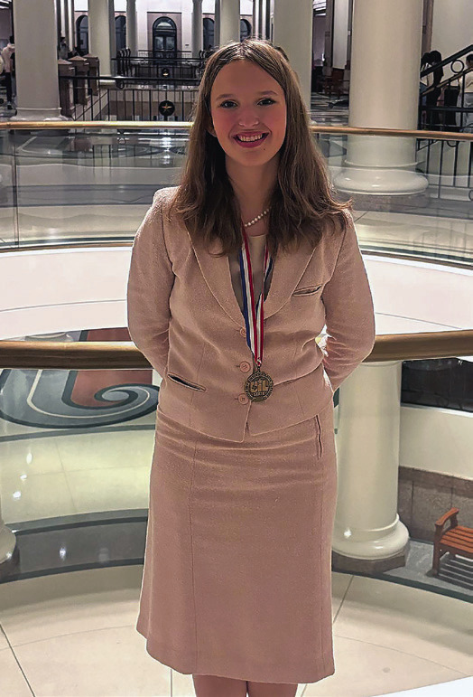 Marcello Torres smiles with his debate coach, Haley Hertel, and Tioga High School Principal Keith Kirkland in recognition of his state debate appearance at the TISD meeting Monday evening.