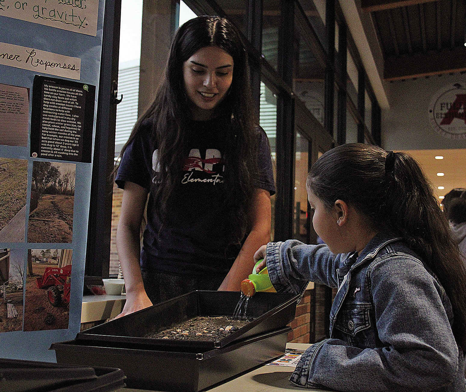 Fuller Elementary teacher Sarahi Contreras talks with her former student, Emma Morales, about the irrigation experiment on Tuesday at Fuller’s STEAM Night. Abigail Bardwell/The Post-Signal
