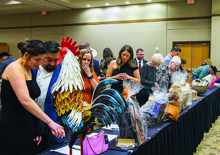 Pilot Point Educational Foundation supporters check out the silent auction items on Saturday. Martin Edwards/The Post-Signal