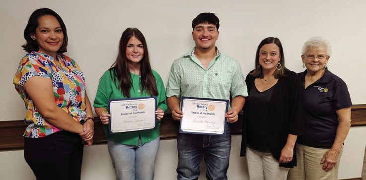 Pilot Point High School seniors Adisyn Johnson and Fernando Marmolejo pose for a picture with Pilot Point High School Principal Marzia Infante, left, counselor Teana Coffman and Lake Ray Roberts Rotary Club President. Photos by Abigail Bardwell/The Post-Signal